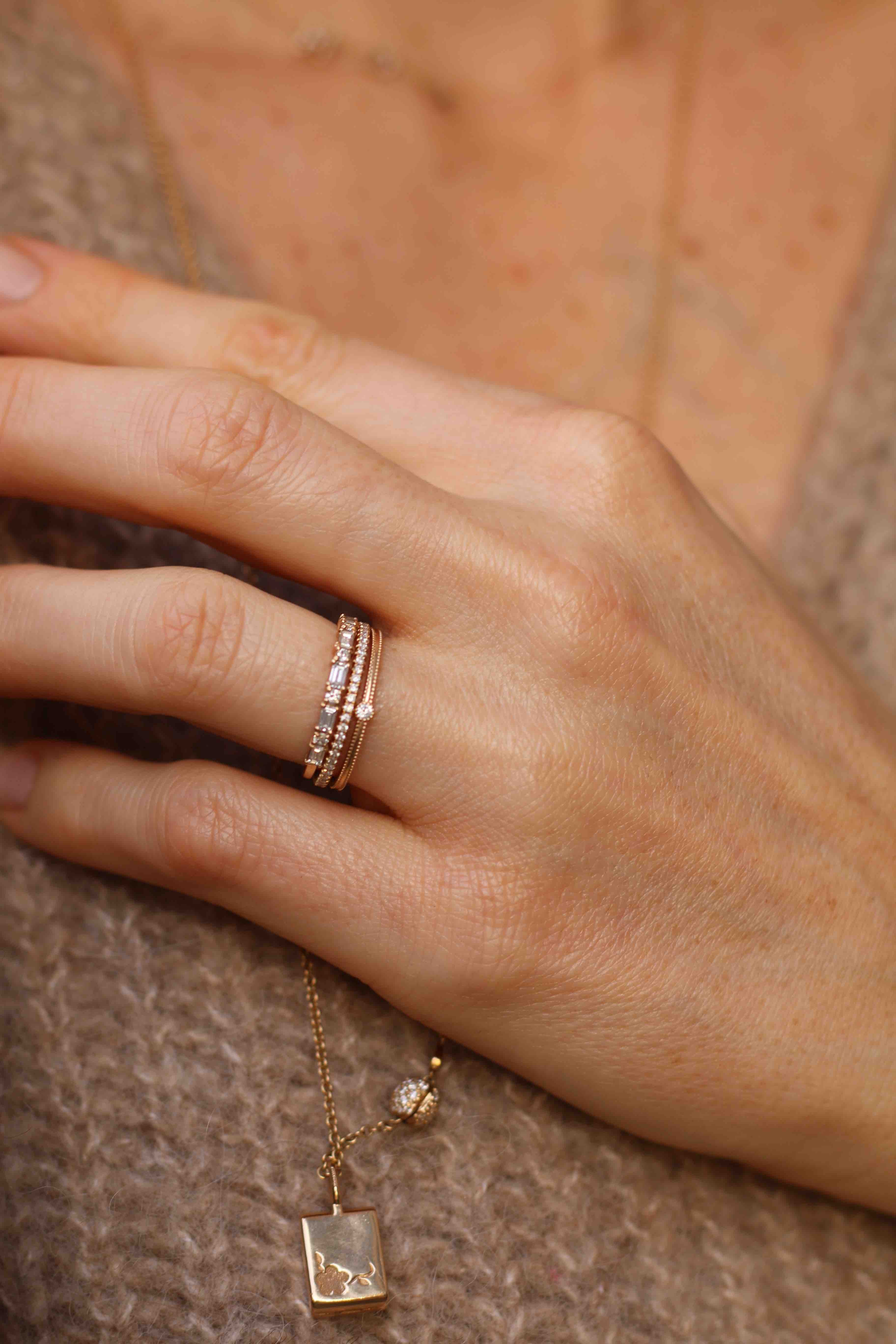 Många investerar i en nätt liten diamantring som sitt allra första smycke. Det är en ring som sedan får hänga med en genom livet. Själv tröttnar jag aldrig på min Tiny, en av de första ringarna vi gjorde. Än idag bär jag nästan dagligen min Tiny Diamond Ring på långfingret - trots att jag genom åren adderat många fler smycken till min samling. Jag hoppas att din Tiny också blir en del av dig. Xx Cecilia