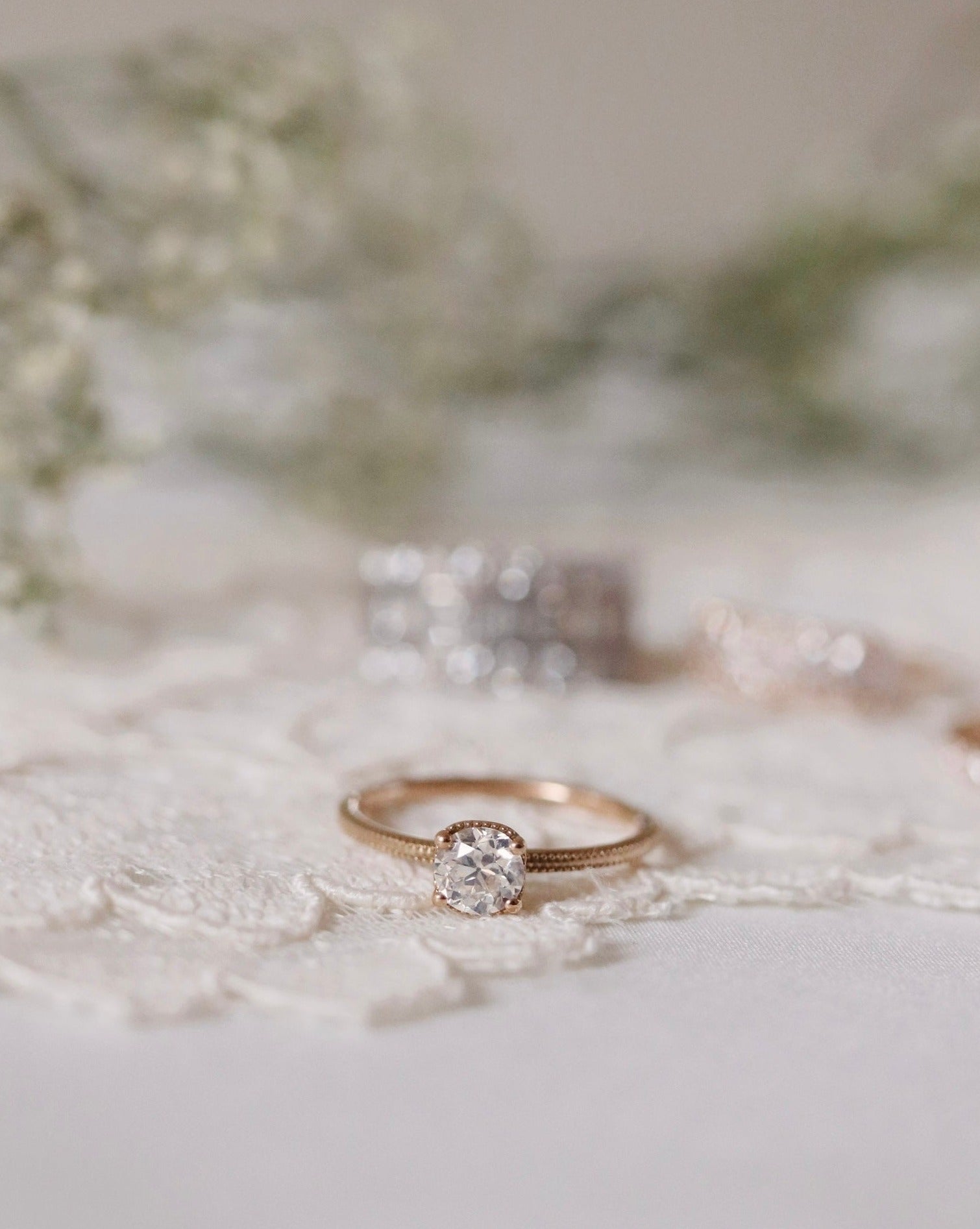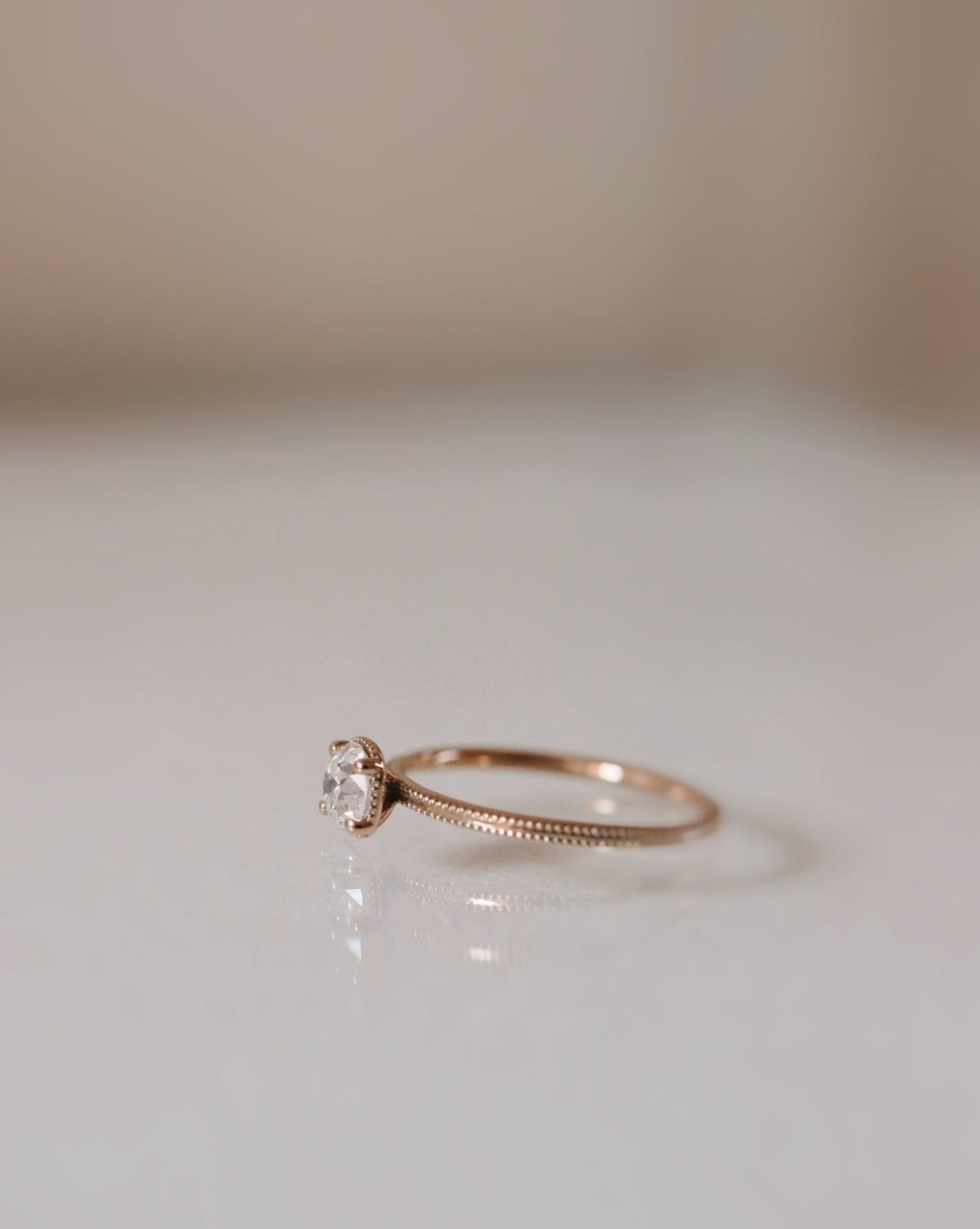 En galet vacker solitärring i gammeldags stil med en antikslipad diamant.