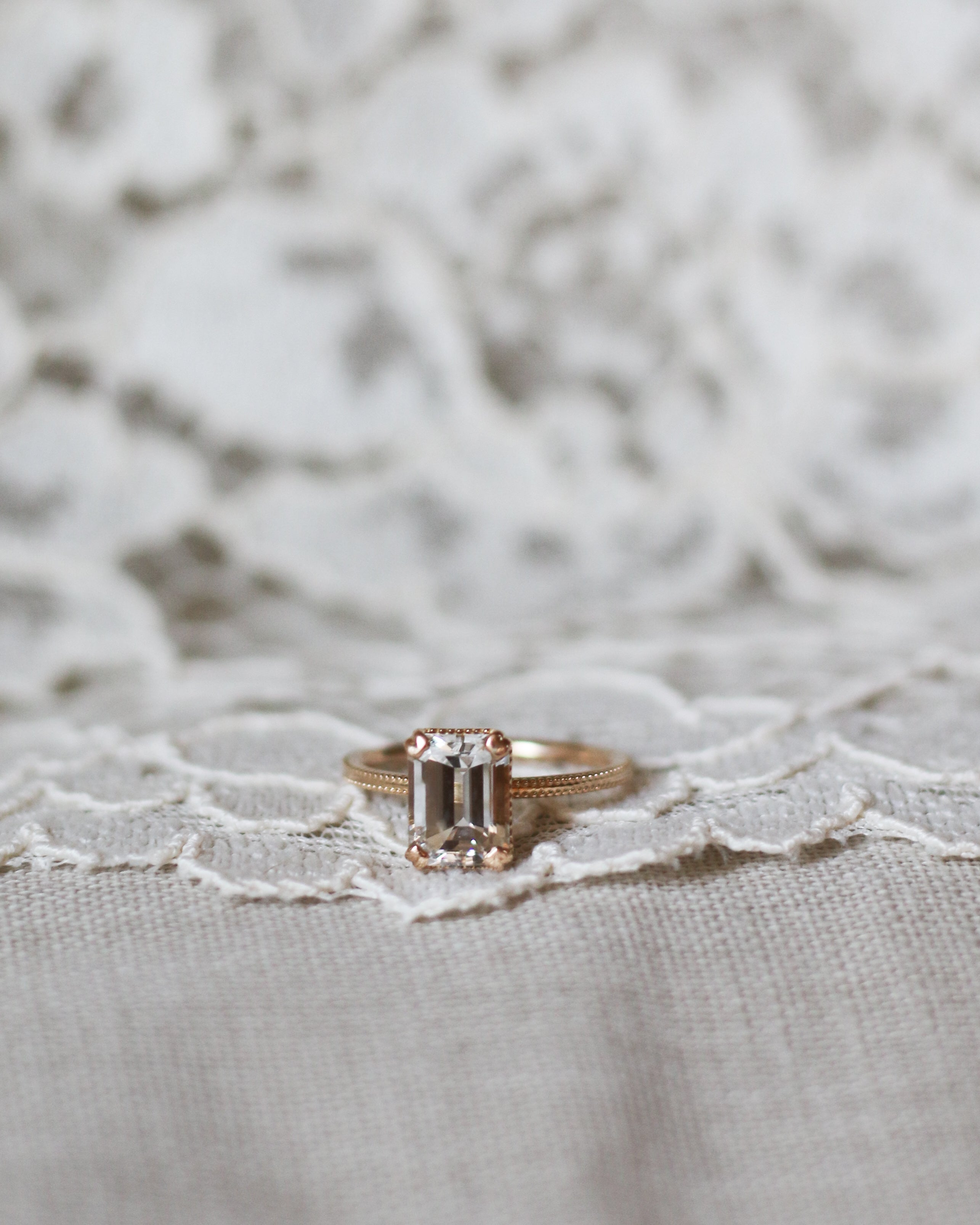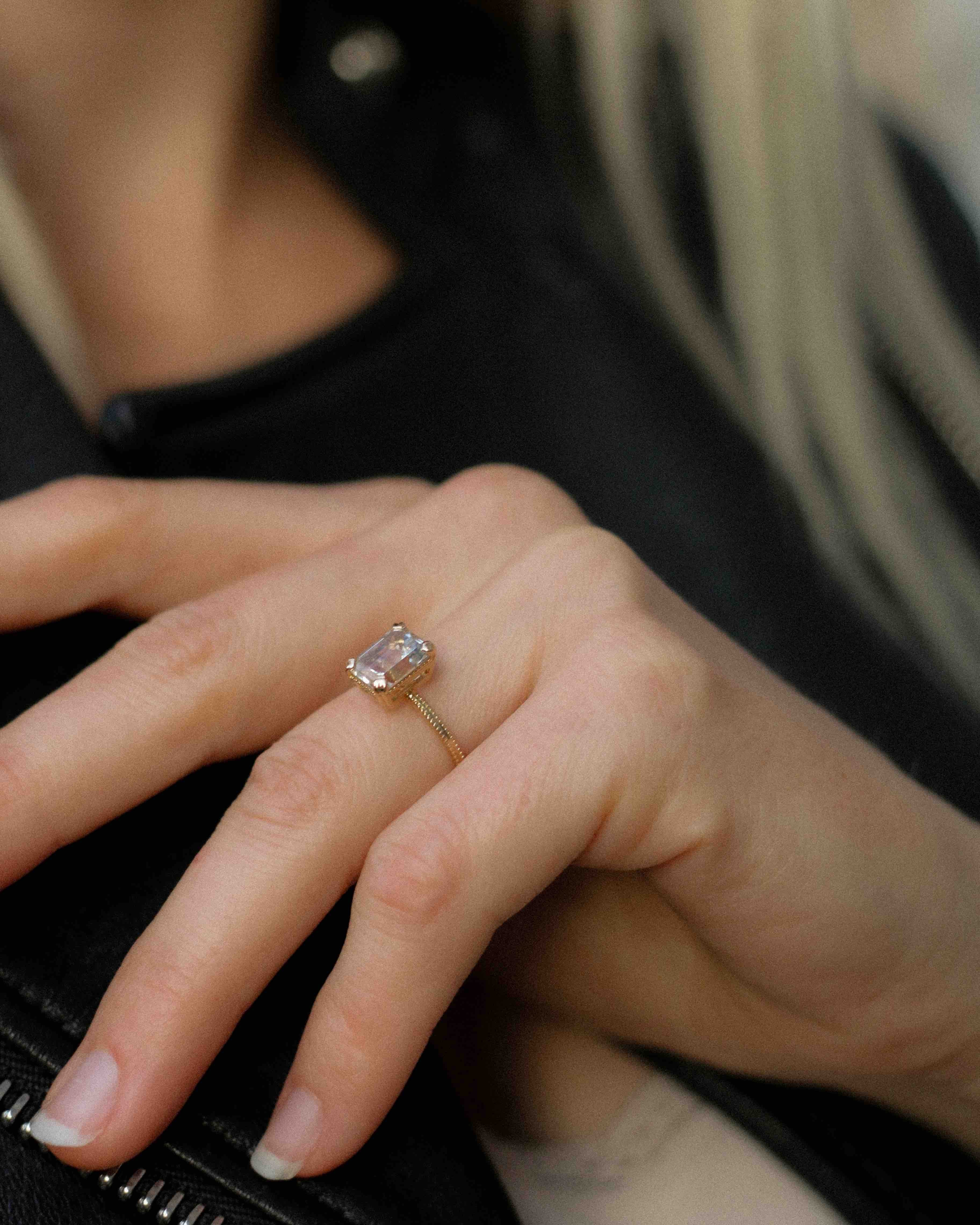 Samtidigt har stenen endast ett subtilt glitter jämfört med exempelvis den runda smaragdslipningen som är översållad av små små facetter (ljusreflekterande ytvinklar). Det gör den till en slipning som passar dig som kanske kommit ett steg längre i ditt smyckesintresse!