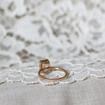 Den vackra milligriffdekoren var vanlig i smycken kring förra sekelskiftet (1800-1900). Det är en teknik där man med små små guldprickar skapar en romantisk, nästan räfflad känsla i ringband och runt stenarna, som får smycket att glittra och ger det en underbart välarbetad karaktär.